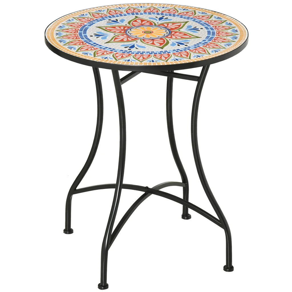 Outsunny Gartentisch Mosaiktisch Rund Bistrotisch Beistelltisch Mit Mosaikplatte Keramik Metall Rot+Blau+Weiß Ø60 Cm