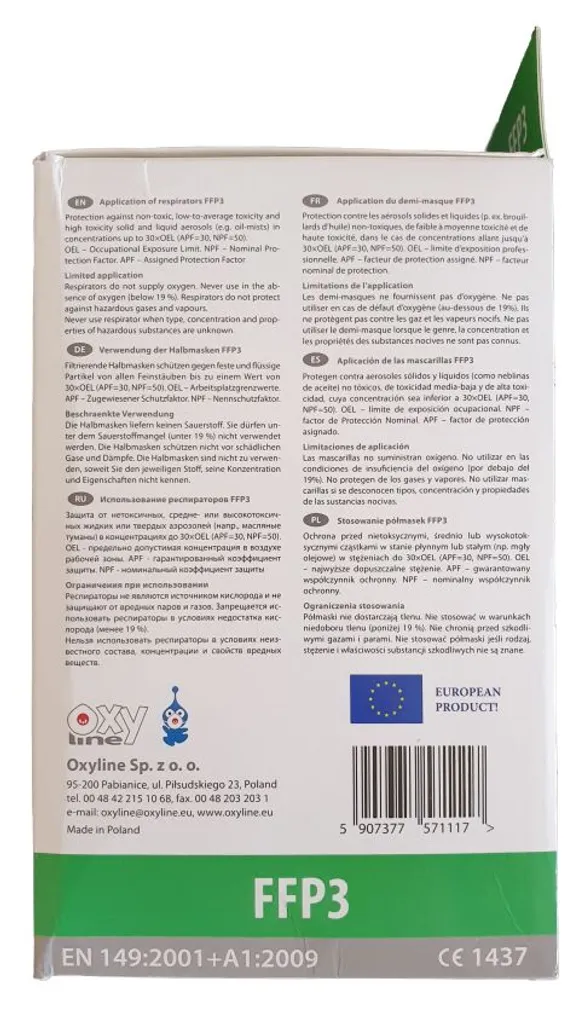 OxyLine 10x Profi Atemschutz FFP3 Schutz Maske Mit Ventil – Wiederverwendbar – 99% Filterung – Hergestellt In Der EU