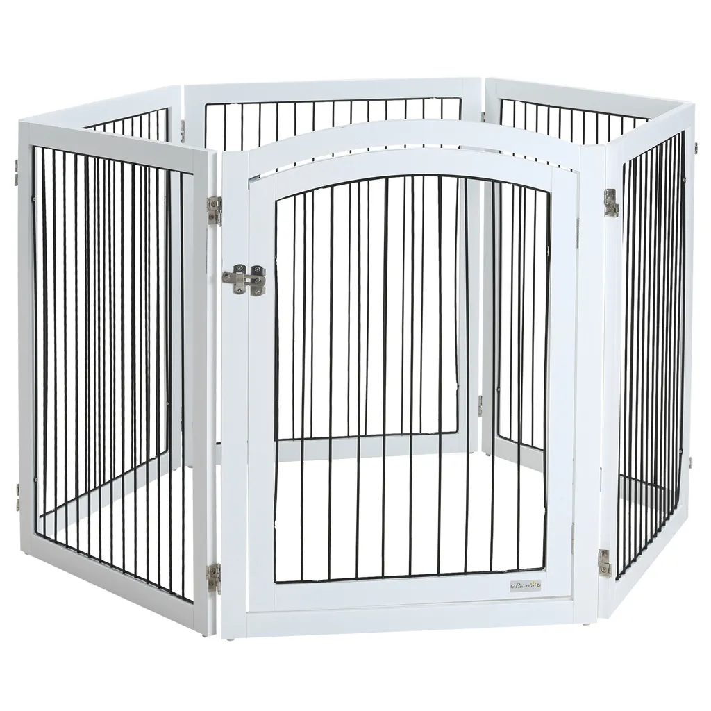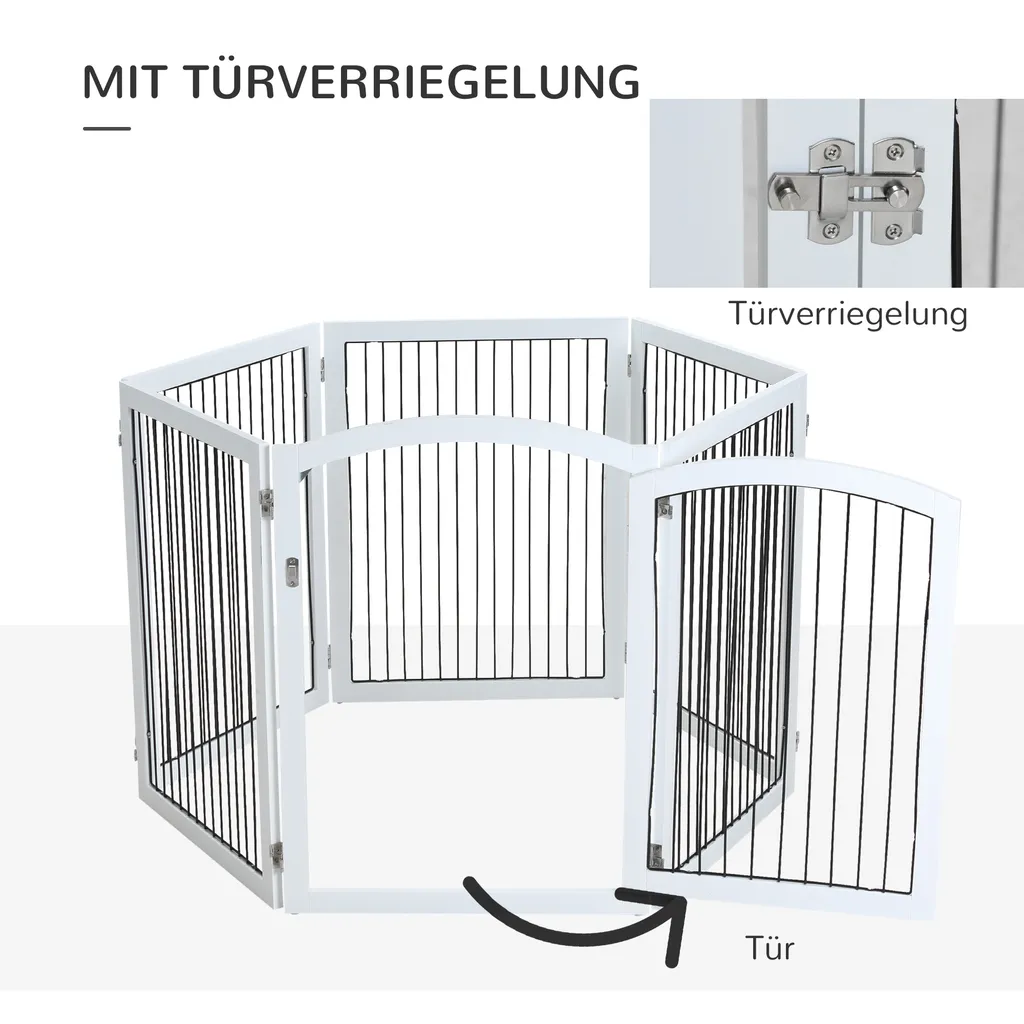 Pawhut Freigehege Schutzgitter Tierlaufstall Welpenauslauf Freilaufgehege Mit Tür Auslauf Für Kleintiere Flexible Klappbar Individuell Weiß+Schwarz 122 X 105,5 X 84,5 Cm