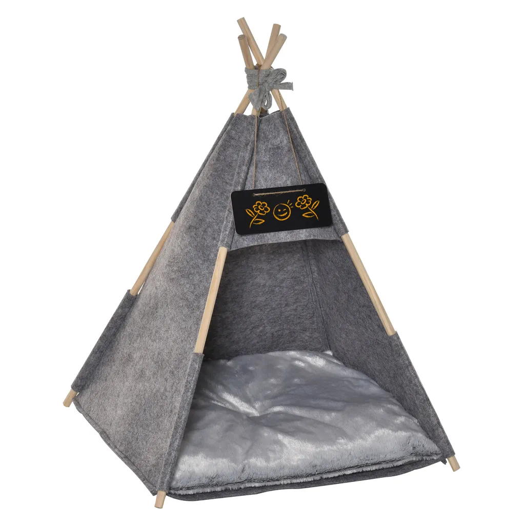 Pawhut Haustierzelt Katzenhaus Hundezelt Katzenbett Katzenzelt Mit Weichem Kissen Plüsch Filz Maschinenwaschbar Grau 58 X 58 X 80 Cm