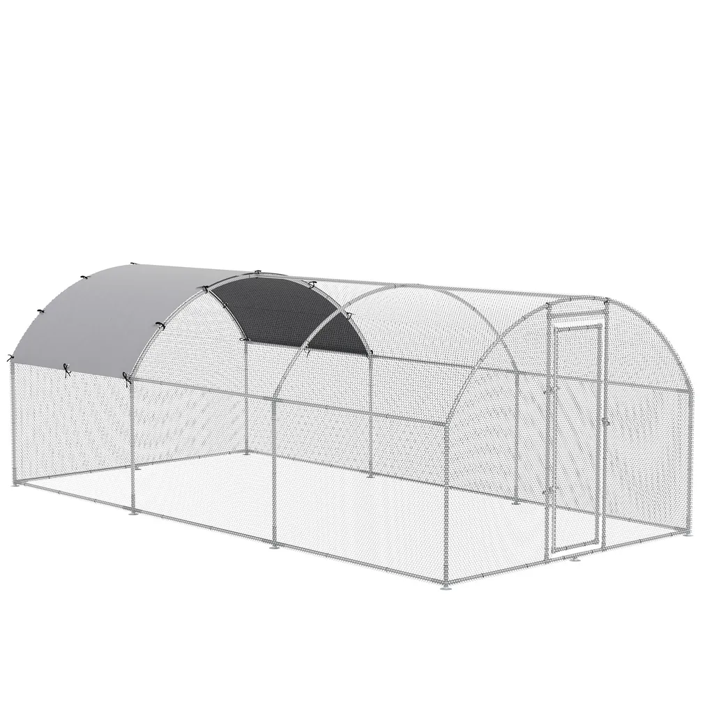 PawHut Hühnerstall Haustierkäfig XXL 280 X 570 X 197 M Outdoor Geflügelstall Für Hühnerkäfig Mit Schatten Dach Schloss Freigehege Für 12-18 Hühner Ente Kaninchen Zink Stahl