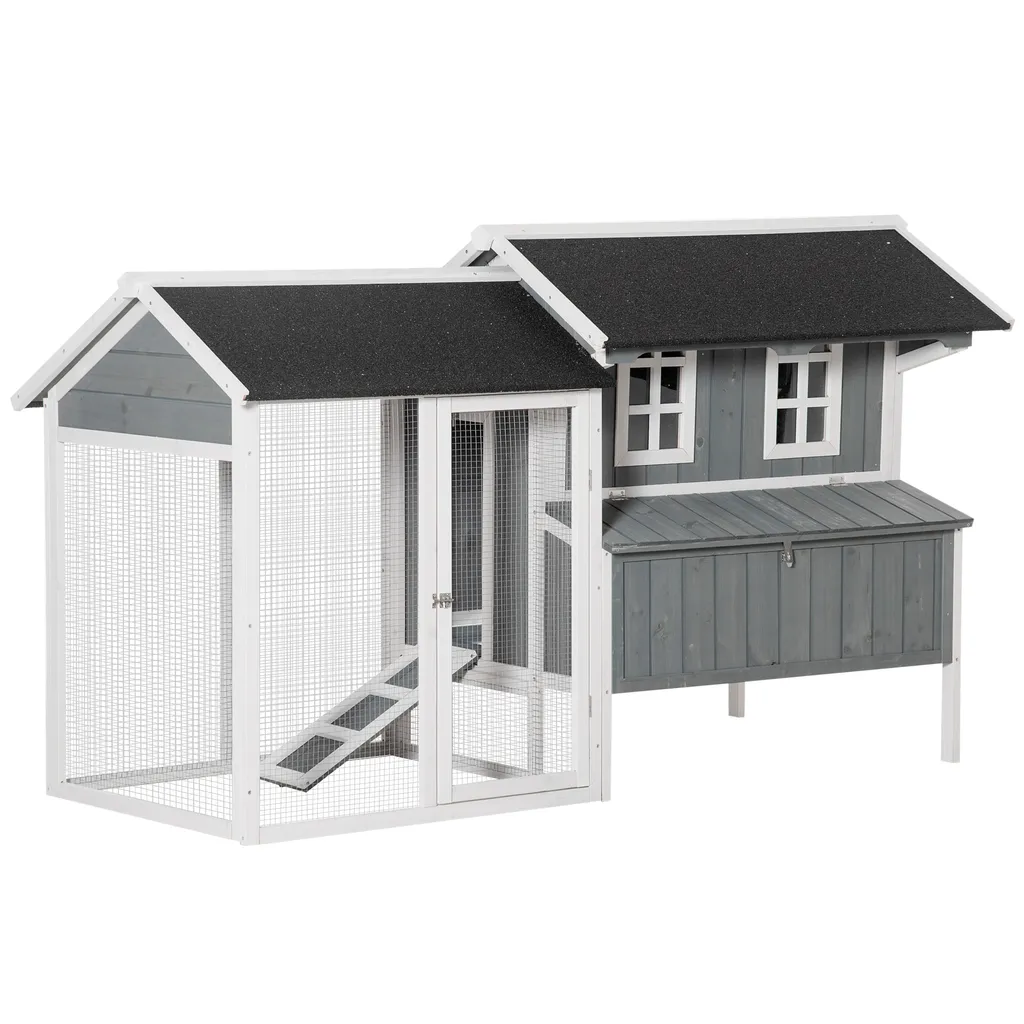 PawHut Hühnerstall Hühnerhaus Mit Nistkasten Rampe Winterfest Hühnervoliere 2 Ebenen Gehege Leicht Zu Reinigen Tannenholz Stahl Asphalt Grau 209,5 X 96 X 123 Cm