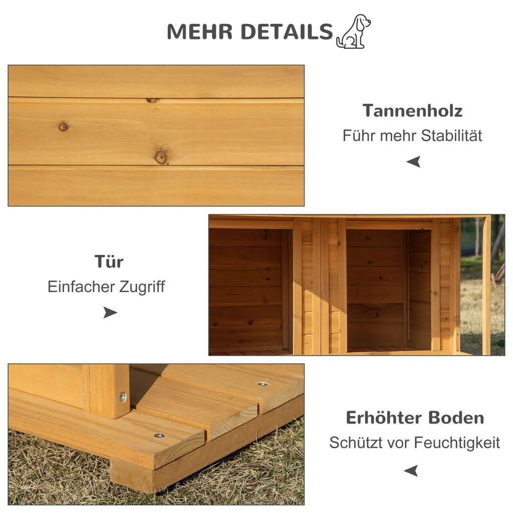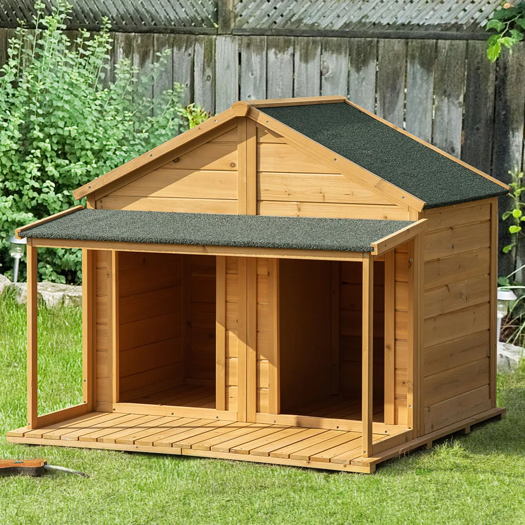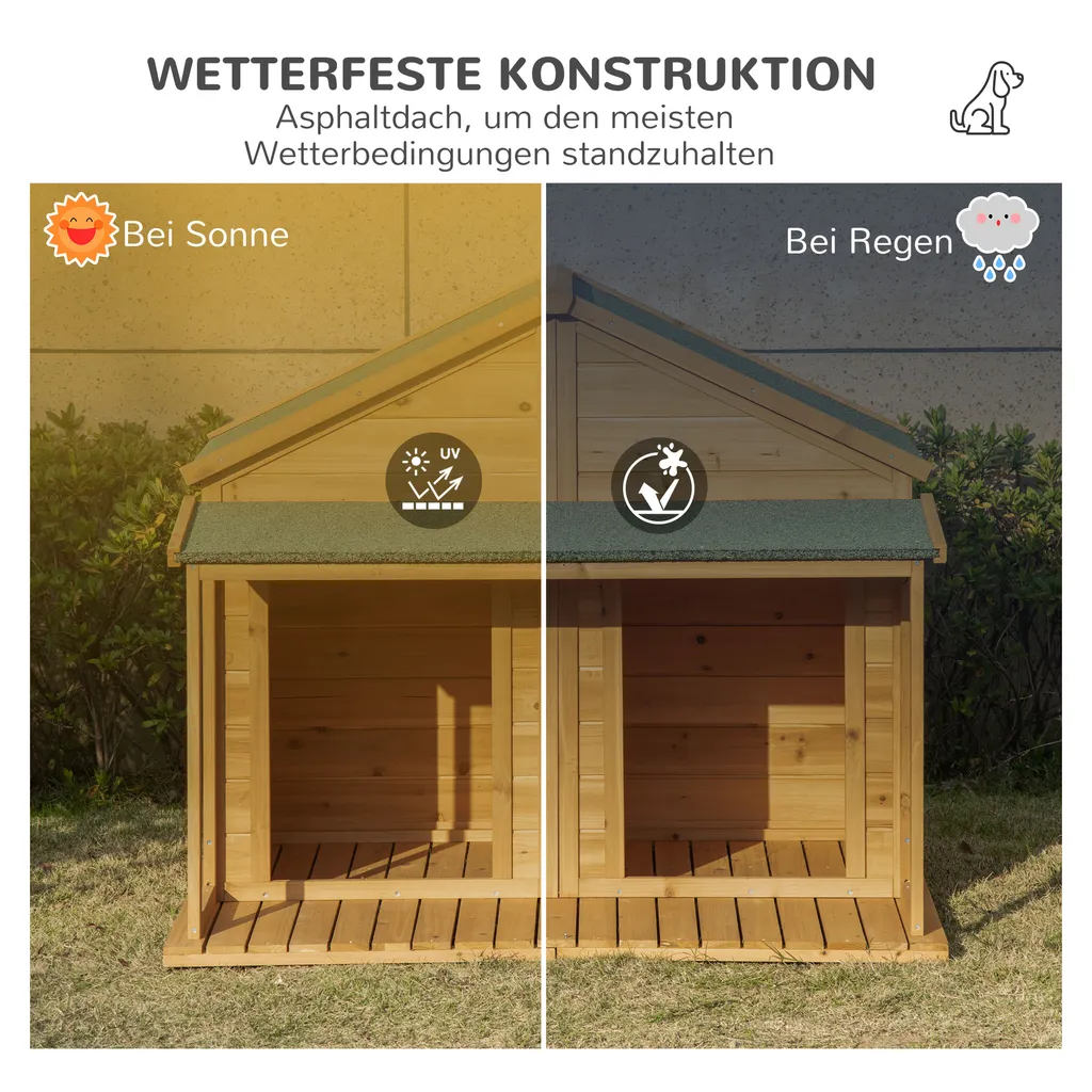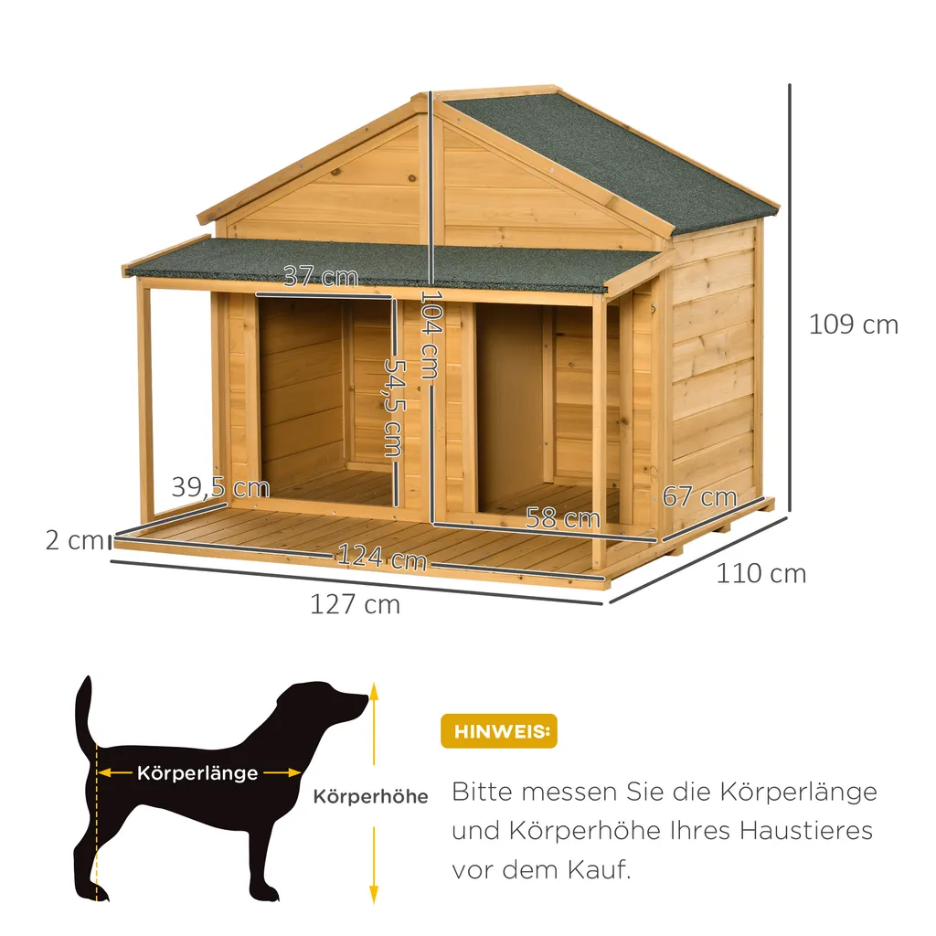 Pawhut Hundehütte Aus Massivholz Isoliertes Hundehaus Mit 2 Räume Asphaltdach Outdoor Hütte Mit Terrasse Gelb+Grün 127 X 110 X 109 Cm