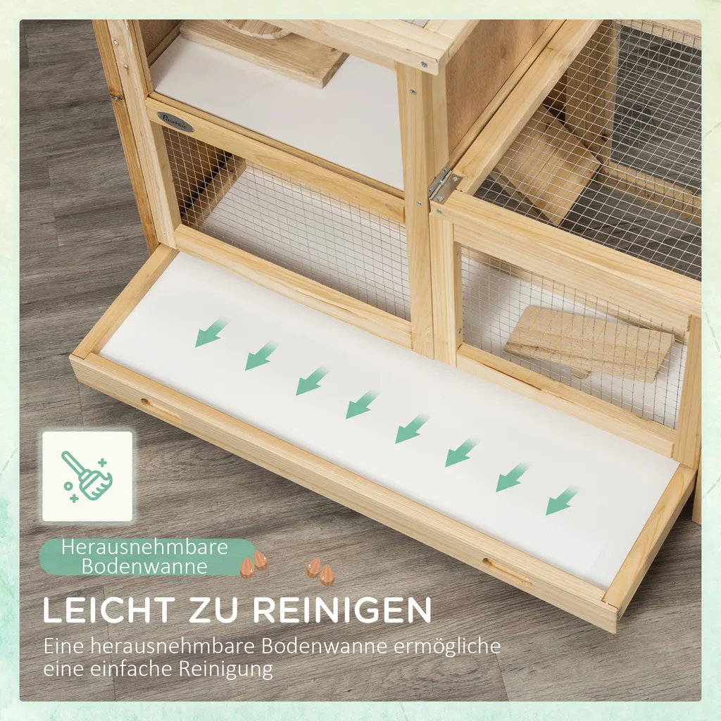 PawHut Kleintierkäfig Kleintierstall Nagerkäfig Mit Rampe Meerschweinchenstall Holzkäfig Kleintier Tannenholz Natur 78 X 41,5 X 60 Cm