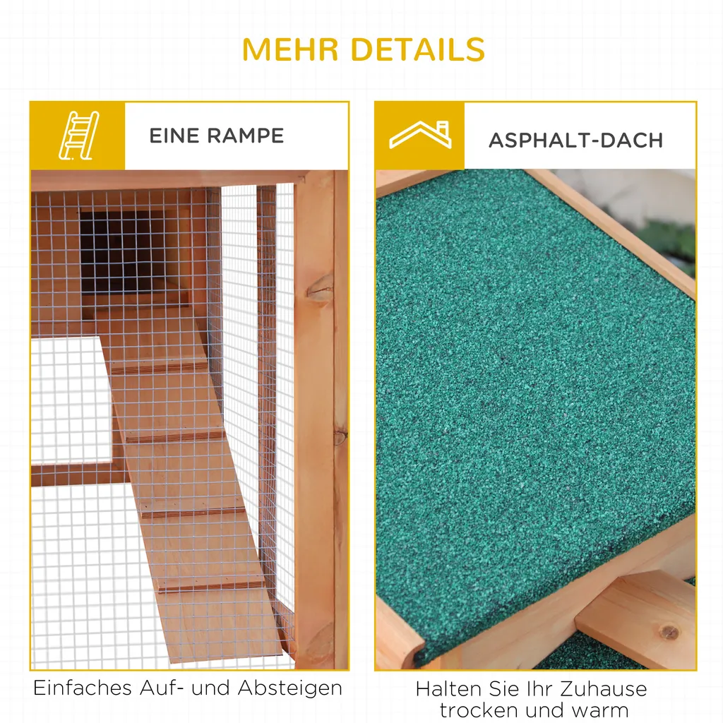 PawHut Kleintierstall Zwergkaninchenstall Meerschweinchenstall Outdoor Freilaufgehege Winterfest Mit Freigehege Massivholz Natur 145 X 45 X 85 Cm