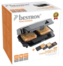 Bestron Antihaftbeschichteter 3-in-1 Sandwich-Kontaktgrill, 900 W, Schwarz