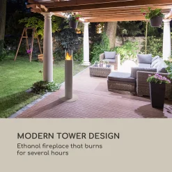 Blumfeldt Firetower Ethanol-Kamin , Sicherheitsbrenner 250 Ml / 1,5 H , Löschhilfe , Flammenschutz , Geruchsneutral , Modernes Design Mit Stahl Und Glas