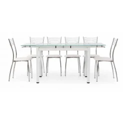 Dmora Ausziehbarer Tisch Mit Weißer Metallstruktur Und Glasablage, 110x70x76