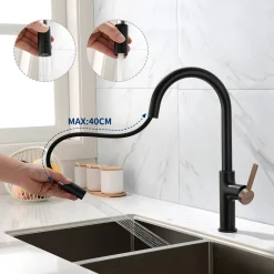 Lonheo Hochdruck Küchenarmatur Schwarz Mit Ausziehbarer Handbrause 2 Funktionen 360° Drehbarer Küchenmischer Aus Edelstahl