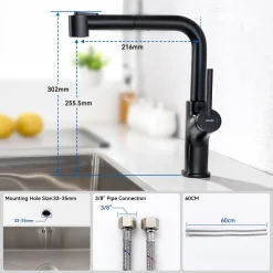 Lonheo Hochdruck Küchenarmatur Mattschwarz Ausziehbare Spültischarmatur Mit Zweistrahl, Hoher Auslauf 360° Schwenkbarer Wasserhahn