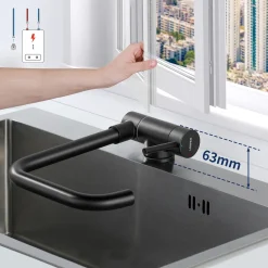 Lonheo Schwarz Niederdruck Küchenarmatur Vorfenster, Umklappbarer Wasserhahn Küche Einhebelmischer 360° Drehbar, Spültischarmatur Küche Vorfenster Aus Edelstahl