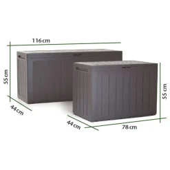 MediaShop Auflagenbox – Aufbewahrungsbox – Holz-Optik – Gartenbox Aus UV-beständigen Material – Innen- Und Außenbereich – 78x44x55cm – Box – Truhe Mit Deckel Für Kissen, Auflagen, Decken, Etc.