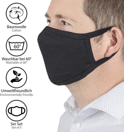 ONVAYA® Mund- Und Nasenmaske | 5 Stück | Schwarz | Atemschutzmaske | Wiederverwendbare Maske | Waschbar | Schutzmaske Aus Baumwolle Mit Innentasche Für Filter | Gesichtsmaske