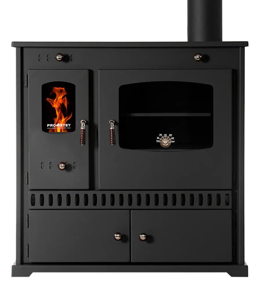 Prometey EEK A+ Kaminofen Mit Backfach Und Herdplatte Perfect Eco 7 KW Kamin Ofen Dauerbrandofen Werkstattofen Schwedenofen Hüttenofen Heizofen