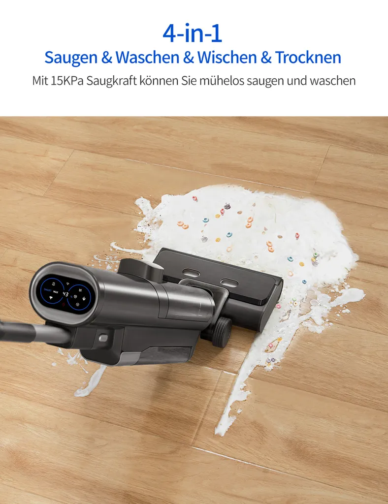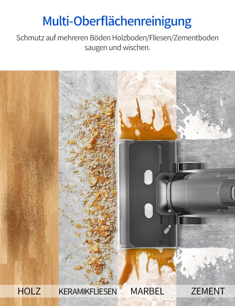 Proscenic WashVac F20 Nass-Trockensauger, Saugwischer Kabellos Mit 1L Frisch Und Schmutzwassertank, Wechselbarer Akku, Selbstreinigung-Grau