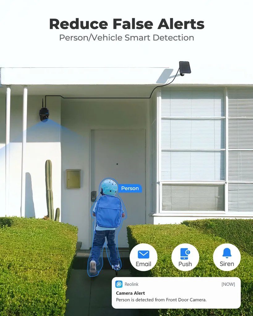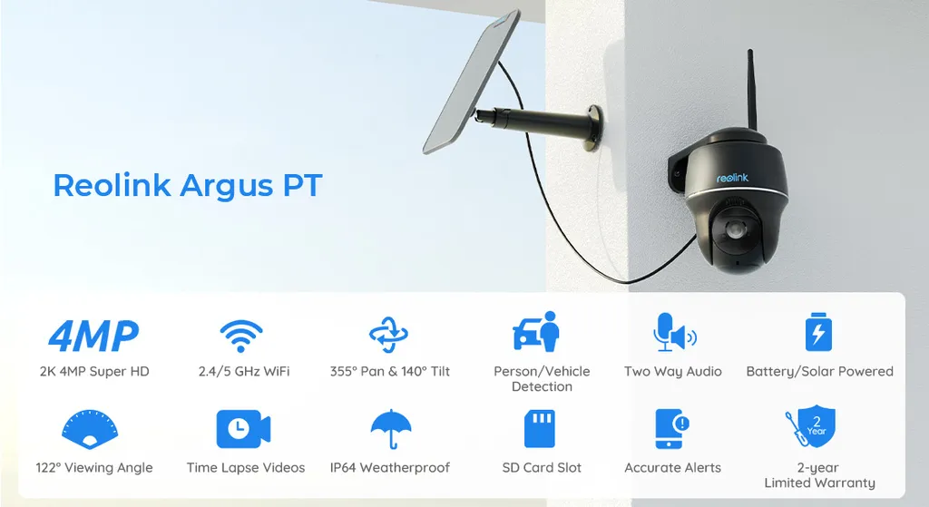 Reolink 2K 355°/140° PTZ Solar/Akku-Überwachungskamera Outdoor Mit 2,4/5GHz WiFi, Personen-/Fahrzeugerkennung, PIR-Sensor, 2-Wege-Audio, Argus PT-2K(Schwarz) + Solarpanel(2Stück)