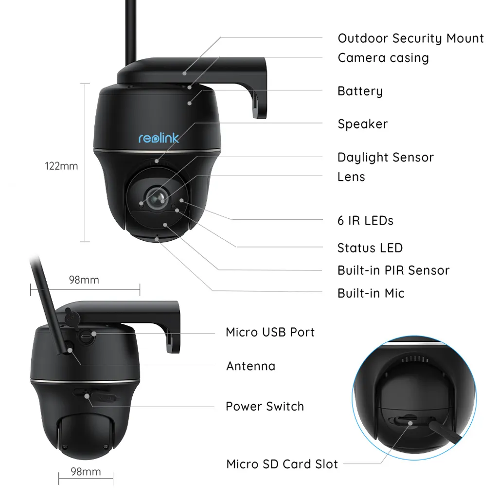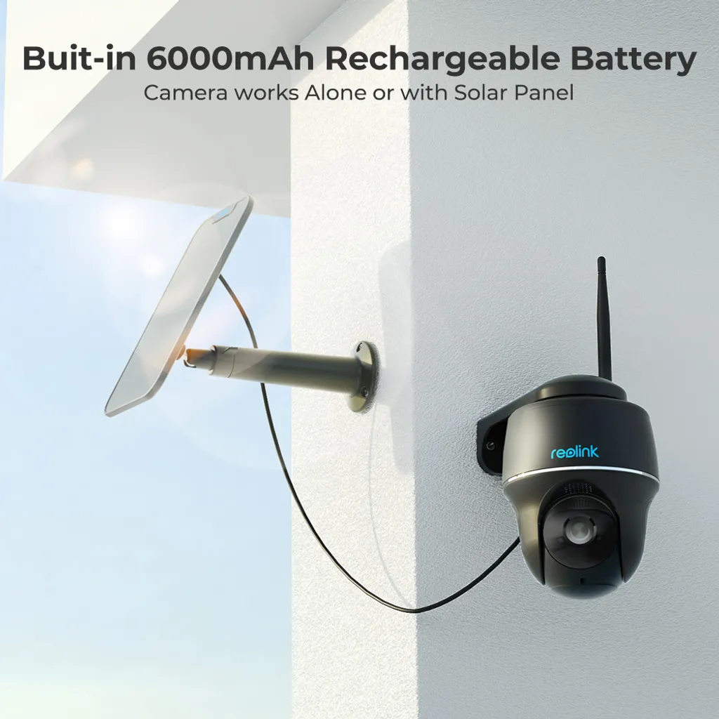 Reolink 2K 355°/140° PTZ Solar/Akku-Überwachungskamera Outdoor Mit 2,4/5GHz WiFi, Personen-/Fahrzeugerkennung, PIR-Sensor, 2-Wege-Audio, Argus PT-2K(Schwarz) + Solarpanel