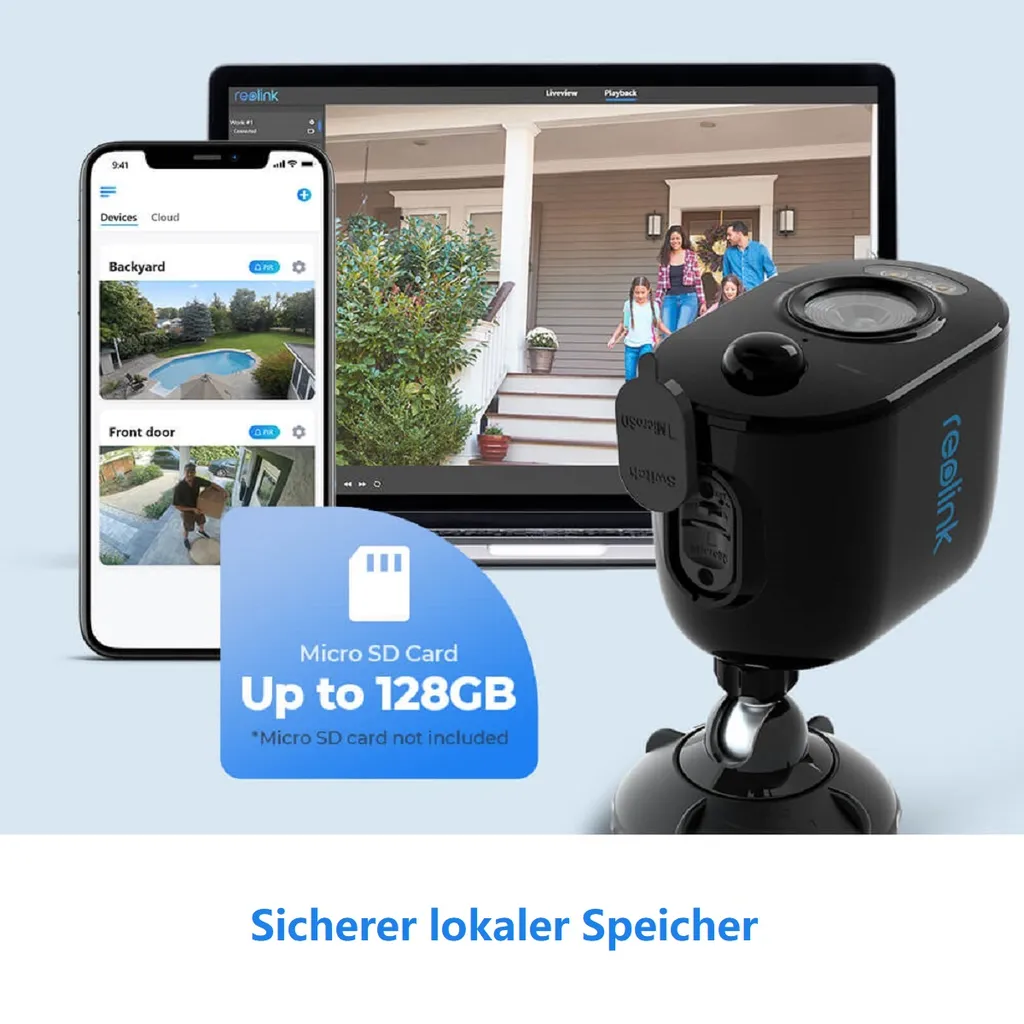 Reolink 2K 4MP Überwachungskamera Aussen Mit 2,4GHz/5GHz WLAN, Personen- Und Fahrzeugerkennung, Videoüberwachung Argus 3 Pro Mit Solarpanel (2 Stück), Schwarz