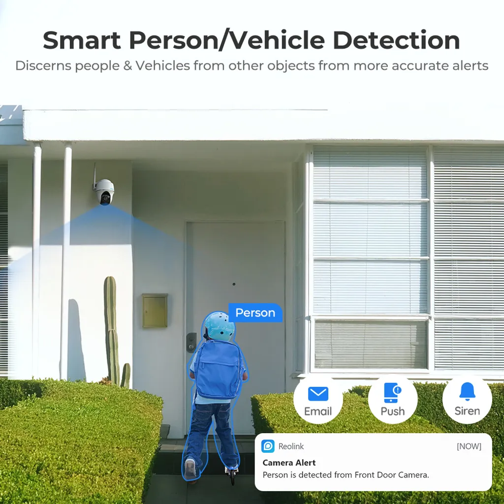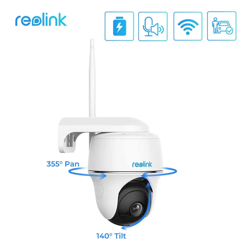 Reolink 4MP 355°/140° PTZ Überwachungskamera Aussen Akku Mit 2,4&5GHz WLAN, Smarte PIR Erkennung, 2-Wege-Audio, Arbeitet Mit Alexa/Google Assistant, Argus PT 4MP, Weiß