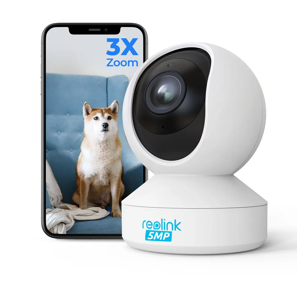 Reolink 5MP PTZ Überwachungskamera WLAN Kamera Innen, 355°/50° Schwenkbare WiFi IP Kamera Indoor Mit 3X Optischem Zoom, 2,4/5 GHz WiFi, Mensch/Haustiererkennung, 2-Wege-Audio, E1 Zoom