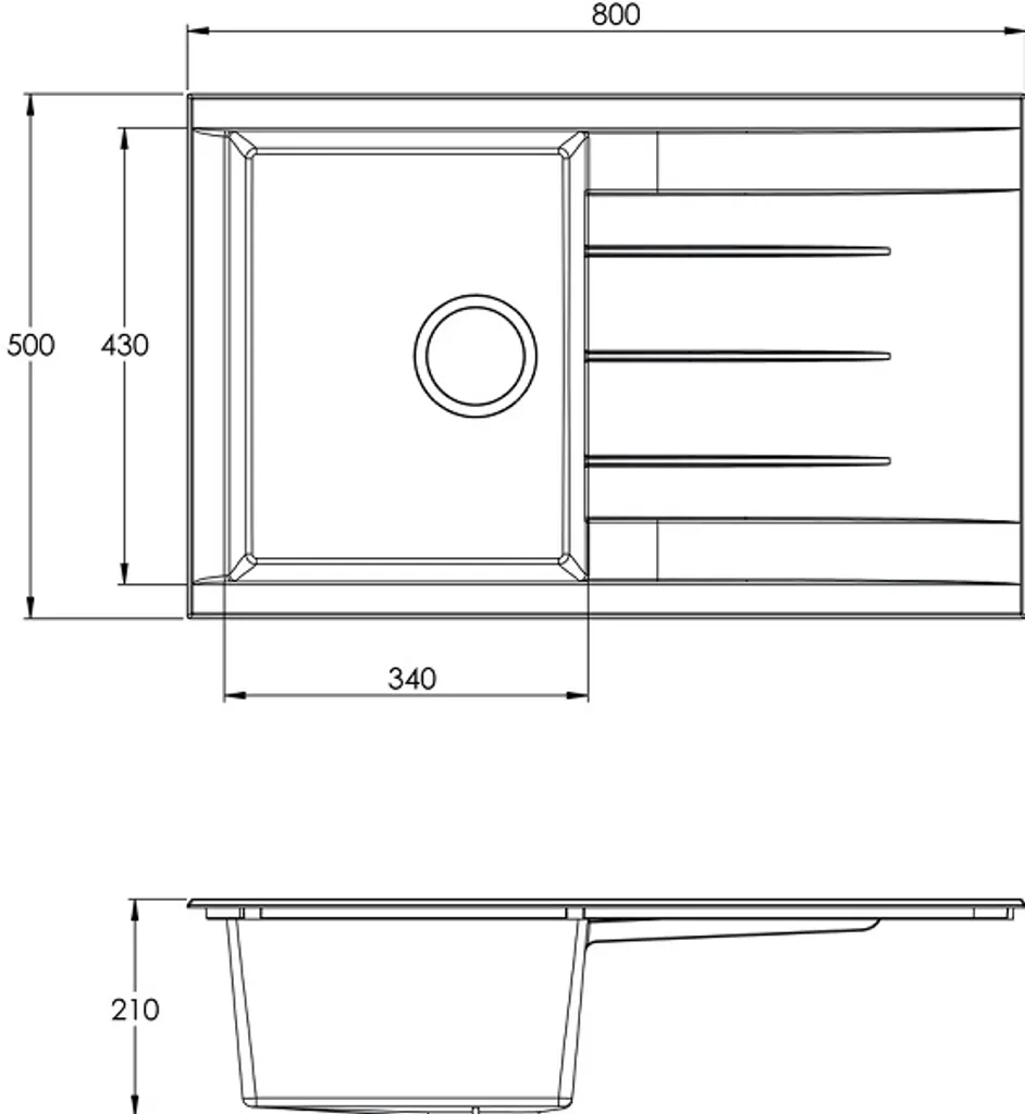 Respekta Mineralite Einbauspüle Houston 80×50 Cm – Schwarz