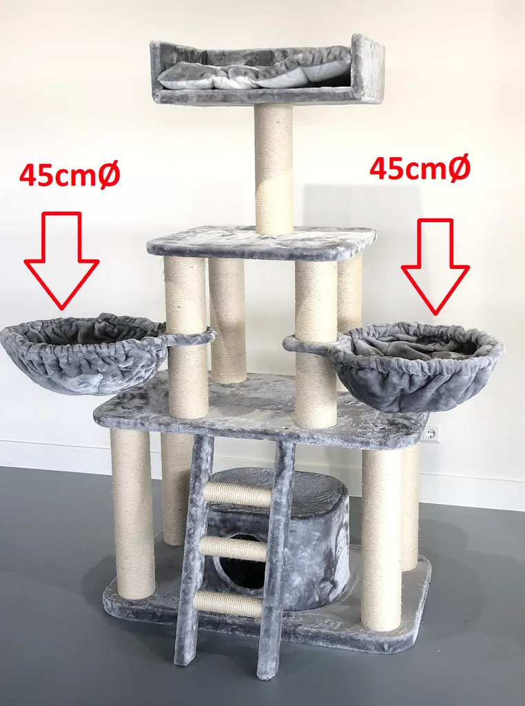 RHRQuality Liegemulde De Luxe Hell Grau Für Kratzbaum 45 CmØ Ist Getested Auf Tragkraft Bis 20KG. Neu 2020 Model. Kombination Zwischen Kissen Und Hängematte. Sehr Kuscheliger Liegeplatz. Ersatzteil