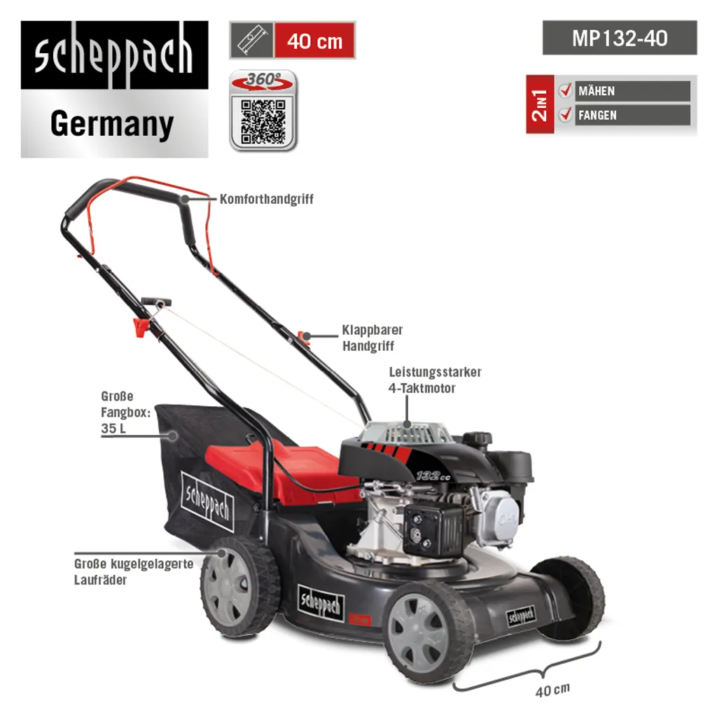 Scheppach Rasenmäher MP132-40 3,4 PS