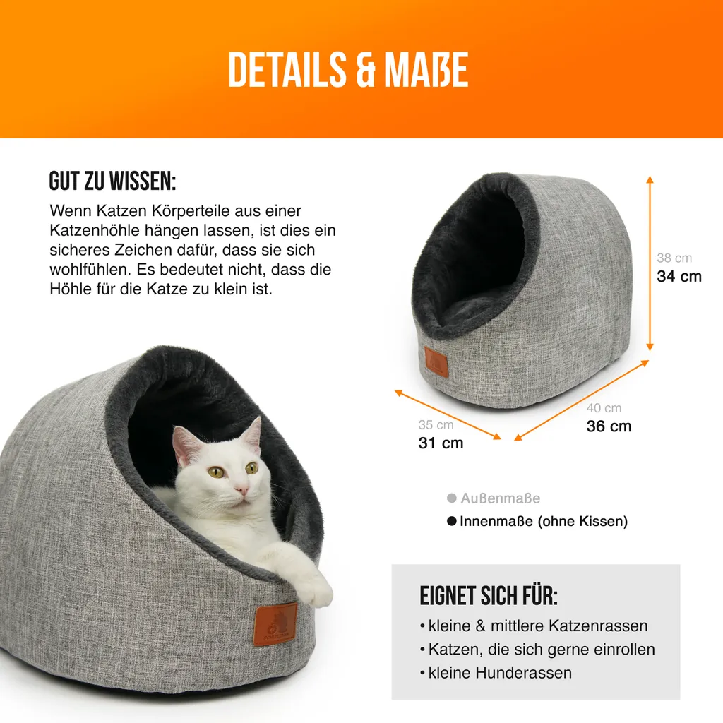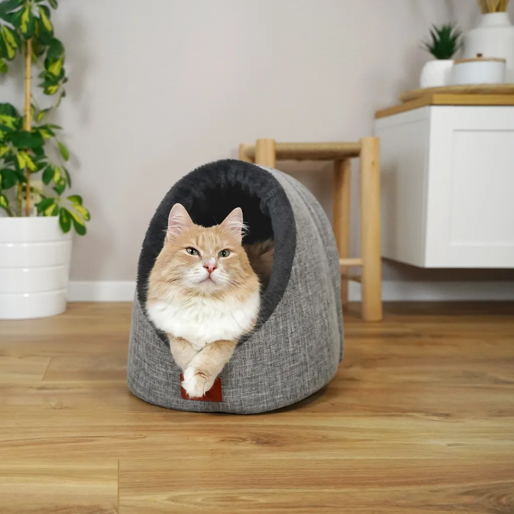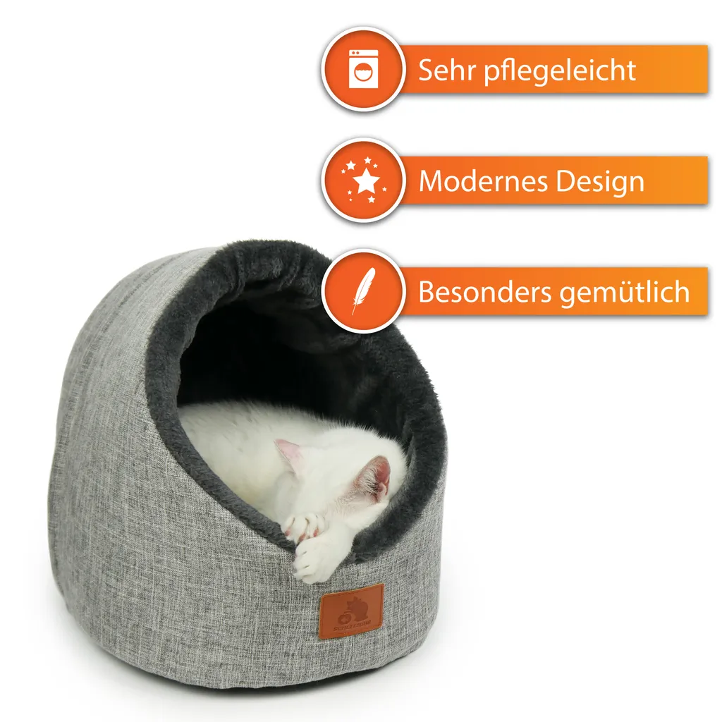 SCHLITZOHR Katzenhöhle Oskar – Waschbare Premium Kuschelhöhle Für Katzen & Hunde In Edlem Grau – Mit Extra Gemütlichem Wendekissen