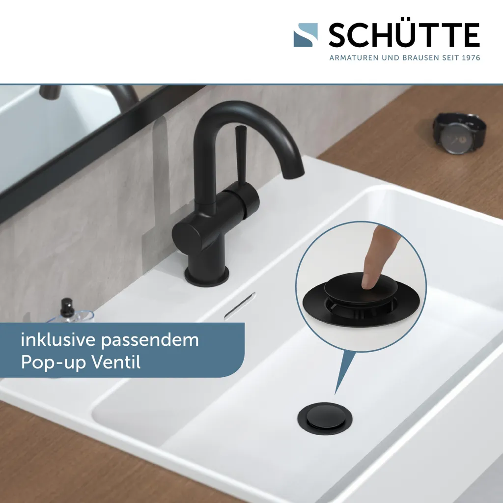 Schütte SCHÜTTE Waschtischarmatur CORNWALL, Wasserhahn Bad Mit Ablaufgarnitur, Pop Up Abflussstopfen