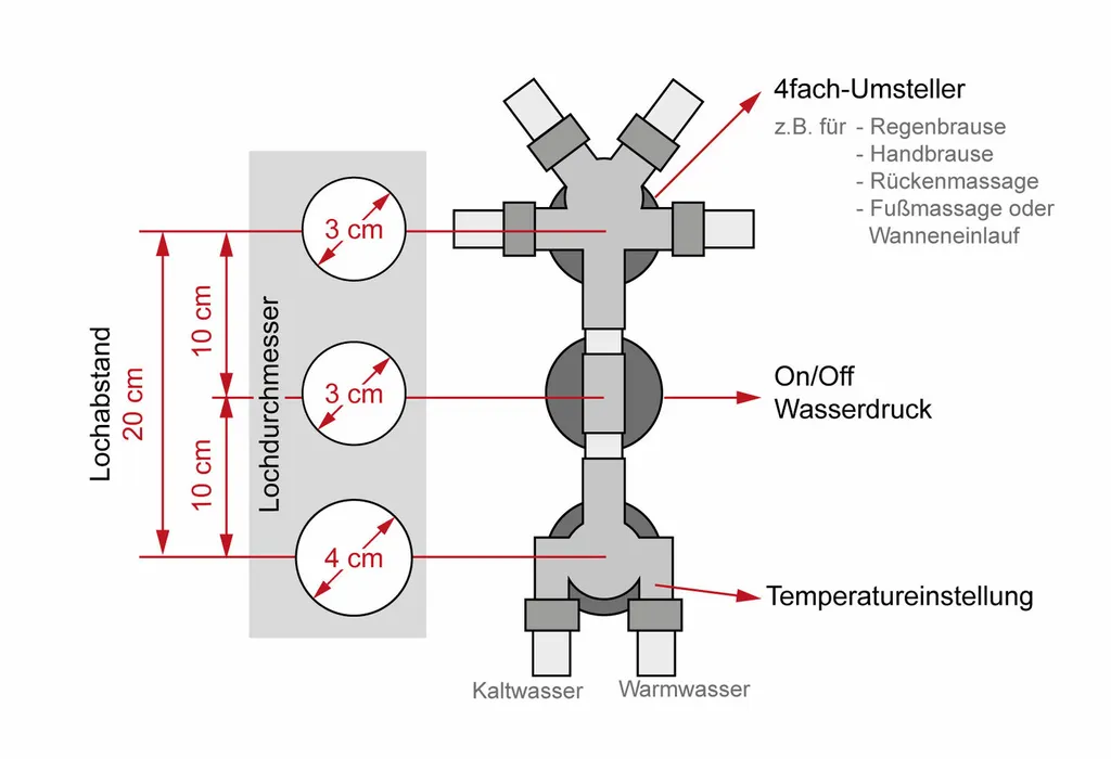 SeniorBad GmbH Ersatz Thermostat Armatur 4 Fach Umschalter Dusche D46 10cm