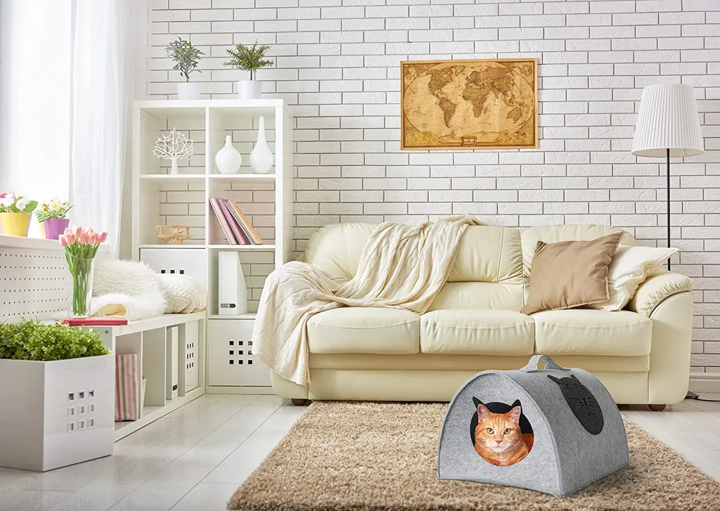 SILUK Filz Katzenhöhle Spielzeug – Faltbare Kuschelhöhle Für Katzen Zum Schlafen, Verstecken, Toben Und Kratzen (L)