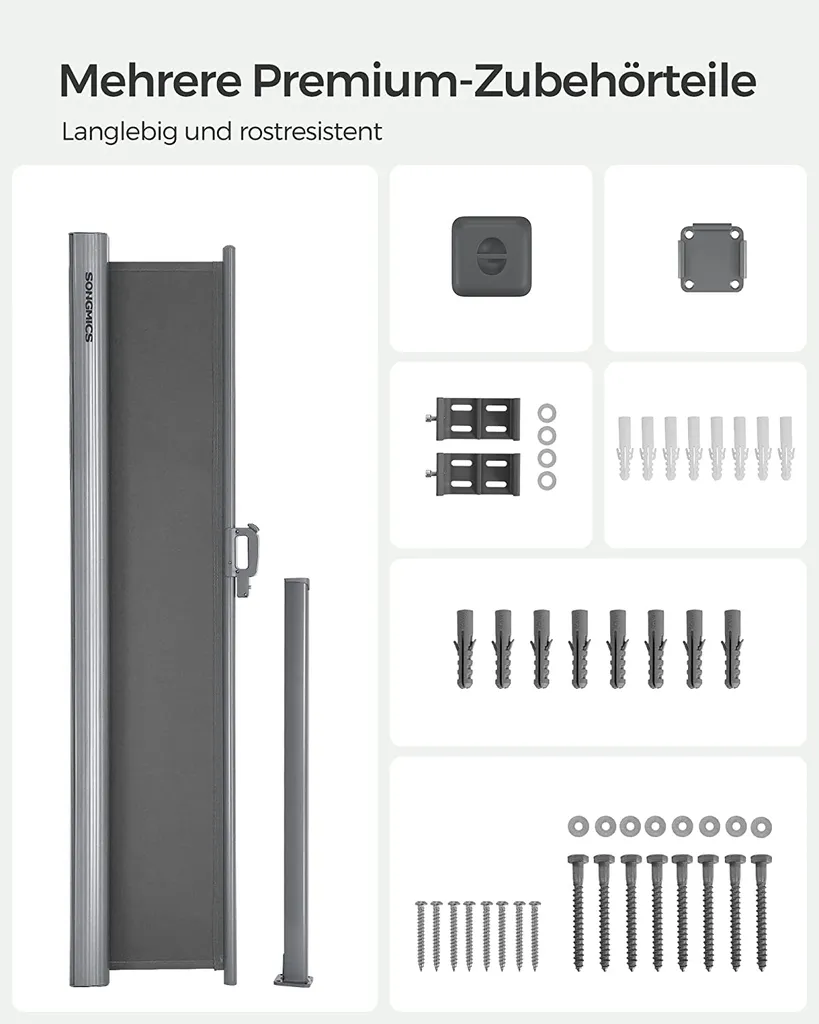 SONGMICS Alu Seitenmarkise 200 X 400 Cm 280 G/m² Ausziehbar Sichtschutz, Sonnenschutz Für Balkon & Terrasse Anthrazit GSA204G01