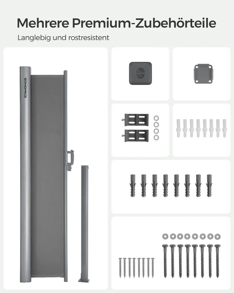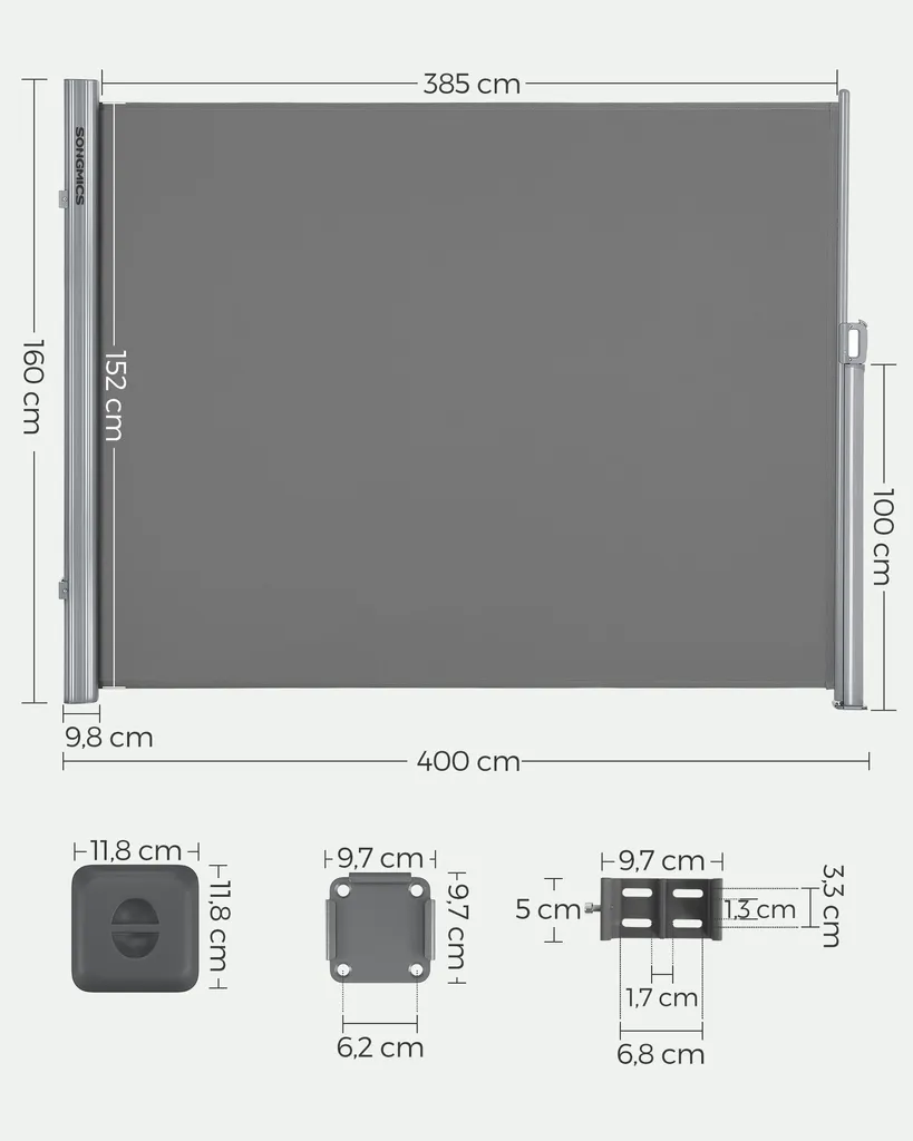 SONGMICS Alu Seitenmarkise, Ausziehbar, 160 X 400 Cm, Aus Polyester (280 G/m²), Markise, Sichtschutz, Sonnenschutz, Blickdicht, Seitenrollo, Für Balkon, Terrasse, Garten, Hellgrau ASG164G03