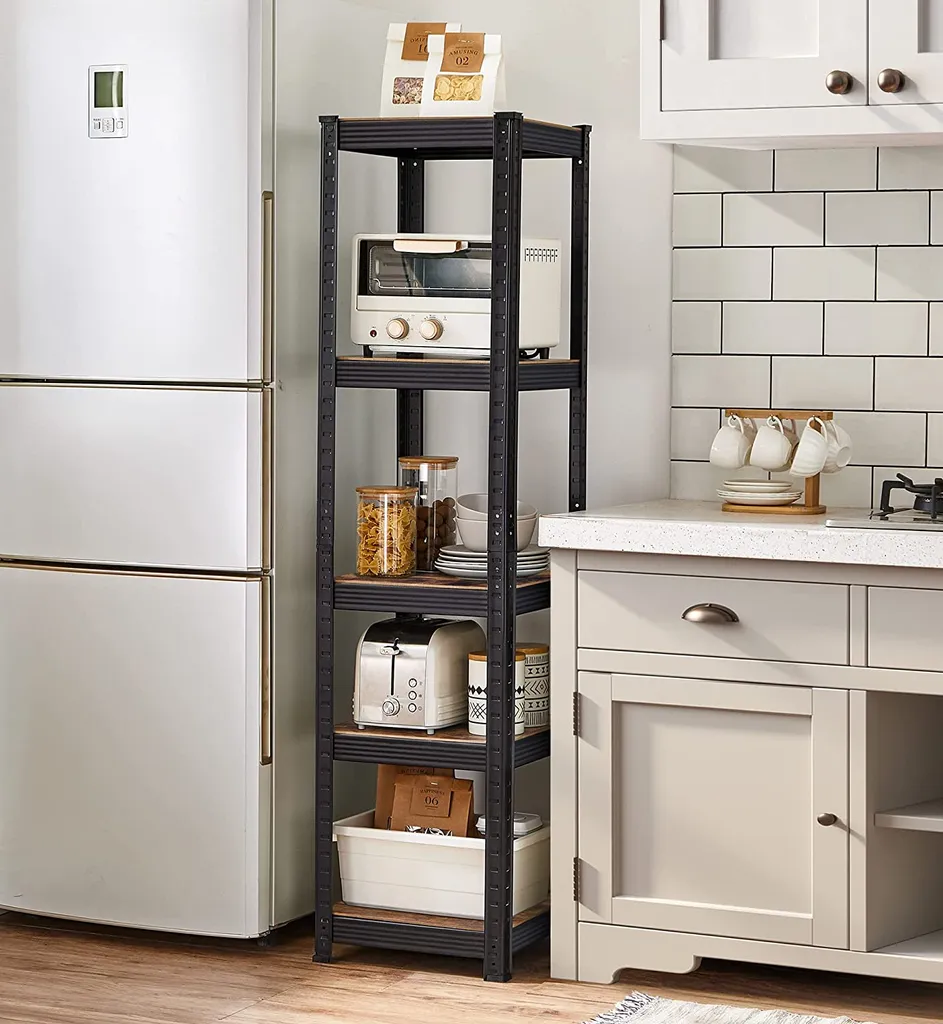 SONGMICS Bücherregal, Schwerlastregal, Küchenregal, Lagerregal, Standregal, 5 Ablagen, 150 X 37 X 37 Cm, Bis 400 Kg Belastbar, Verstellbare Ablagen, Industrie-Design, Vintagebraun-schwarz GLR037B01