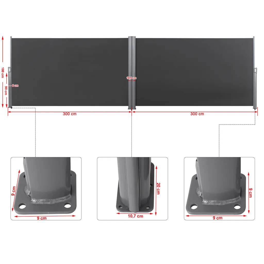 SONGMICS Doppelseitenmarkise, 1,8 X 6 M (H X L), Ausziehbare Seitenmarkise, Sichtschutz, Sonnenschutz, Seitenrollo, Für Balkon, Terrasse Und Garten, Rauchgrau GSA360G