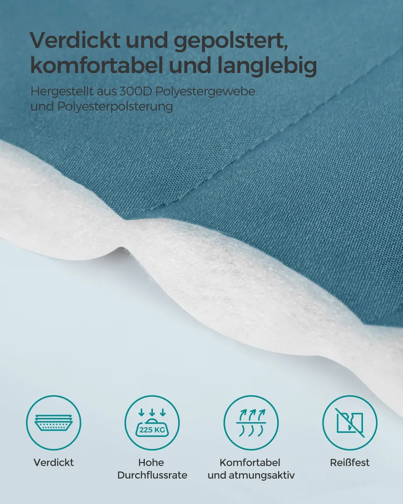 Songmics Hängematte Für 2 Personen, Gepolstert, Outdoor Hängematte Mit Trennbaren Bambusstangen, Camping-Hängematte Mit Kissen, 200 X 140 Cm, Max. 225 Kg Belastbar, Blau-beige