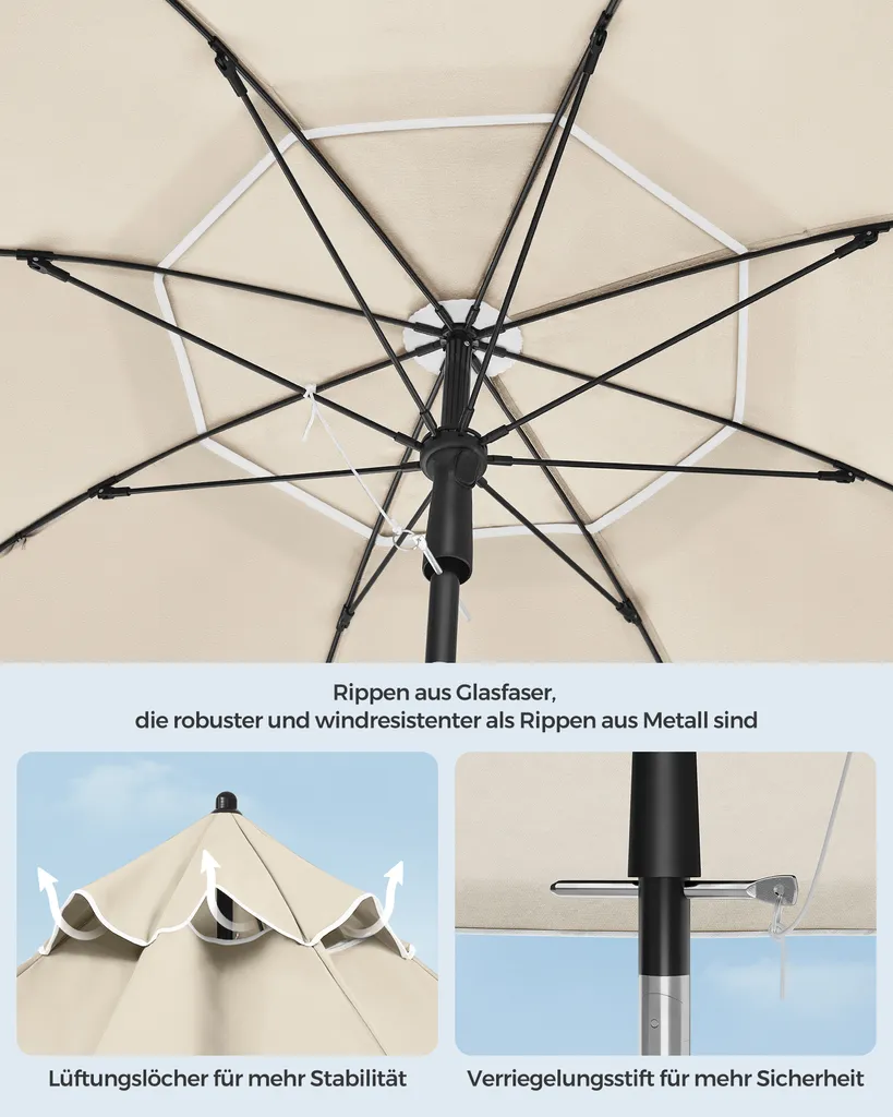 SONGMICS Sonnenschirm 160 Cm, Sonnenschutz UPF 50+, Beidseitig Um 30° Knickbar, Höhenverstellbar, Mit Tragetasche, Ohne Ständer, Beige GPU60WTV1