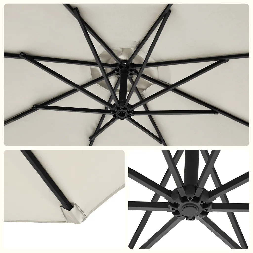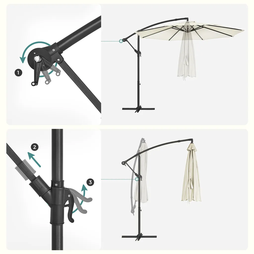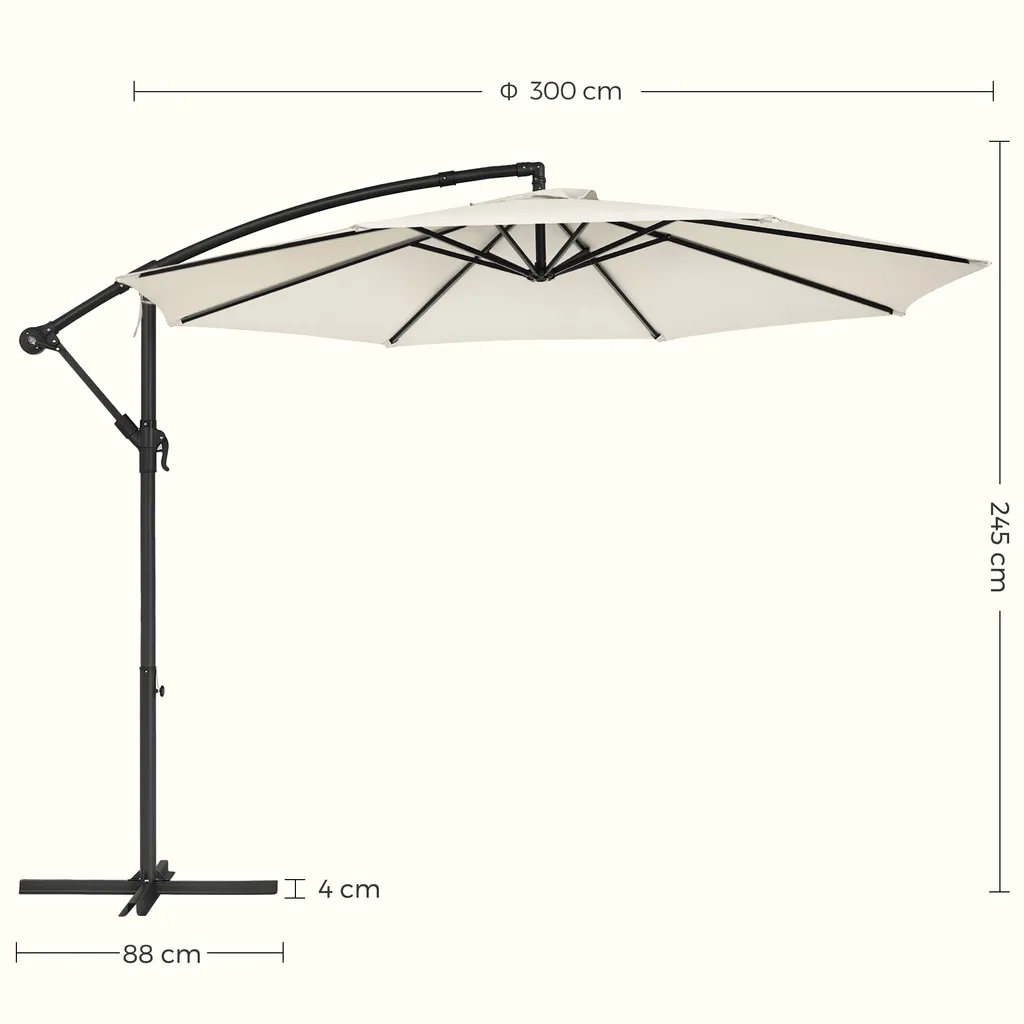 SONGMICS Sonnenschirm, Ø 300 Cm, Mit Ständer, Sonnenschutz UV-Schutz Bis UPF 50+, Mit Kurbel Zum Öffnen Und Schließen, Beige GPU116M01