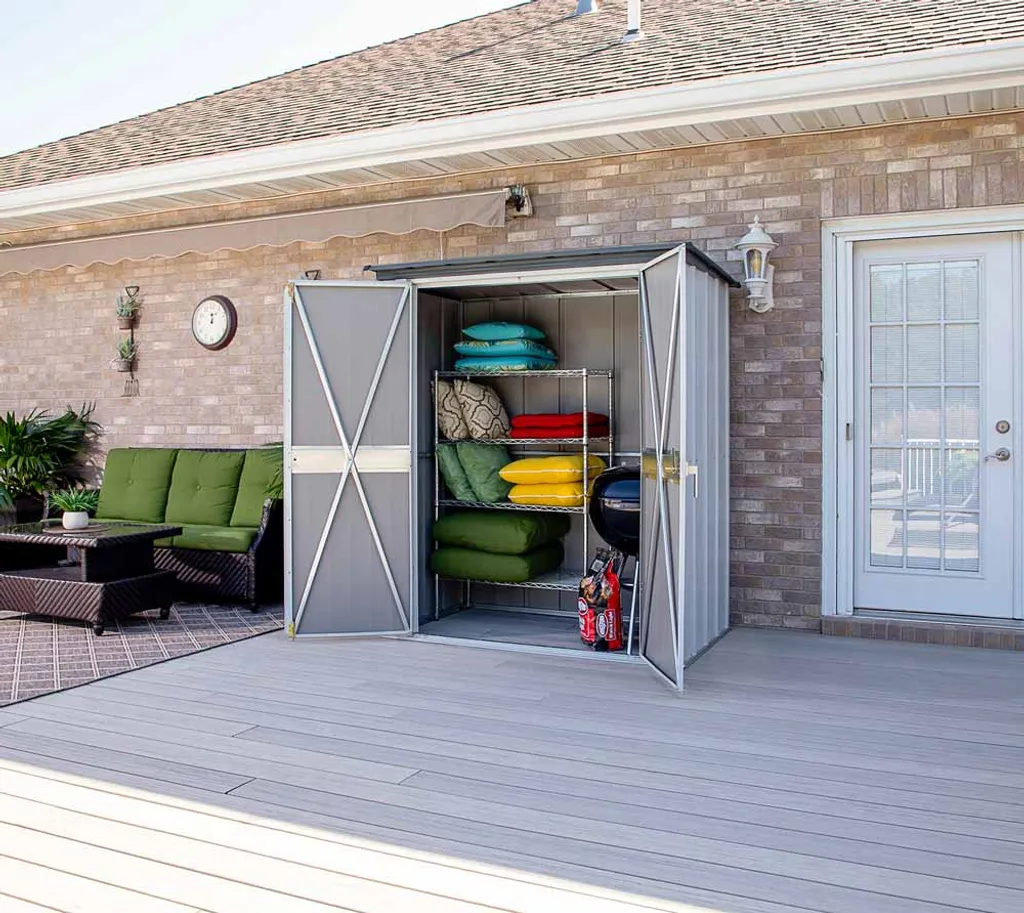 Spacemaker Metall Geräteschrank „5 X 3“, Gartenaufbewahrung Lichtgrau 1,4 M²