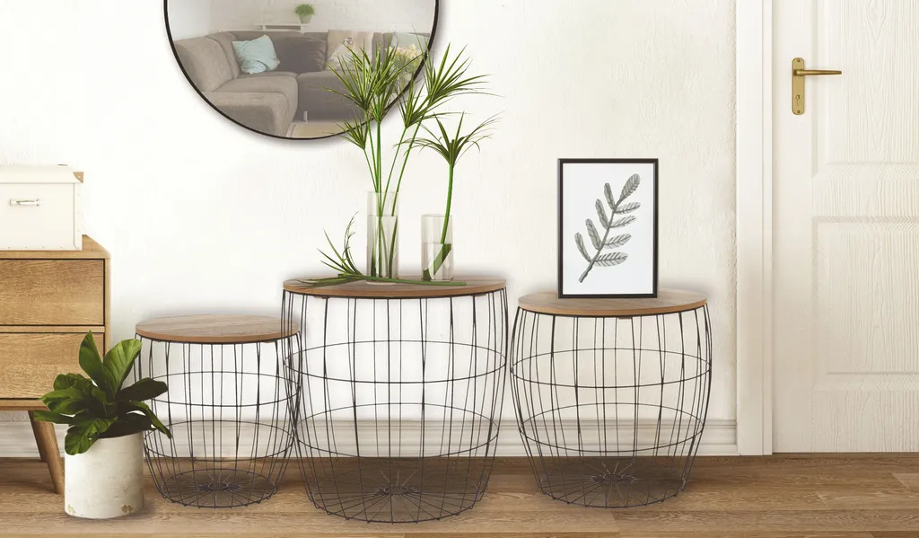 | Zusätzliche Varianten | Beistelltische im 3er Set – oval – Farbe: schwarz (9200180), Teak Beistelltisch – 2er Set – Metallgestell mit Holz Platte |