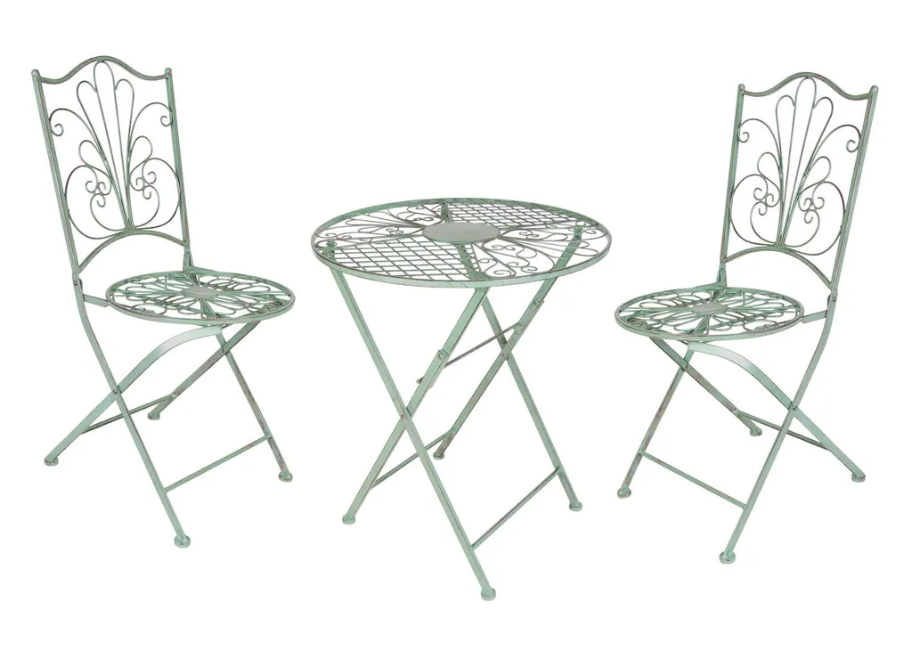 Spetebo Metall Bistroset In Antik Grün – 1x Tisch Und 2x Stuhl – Bistro Gartenstuhl Gartentisch