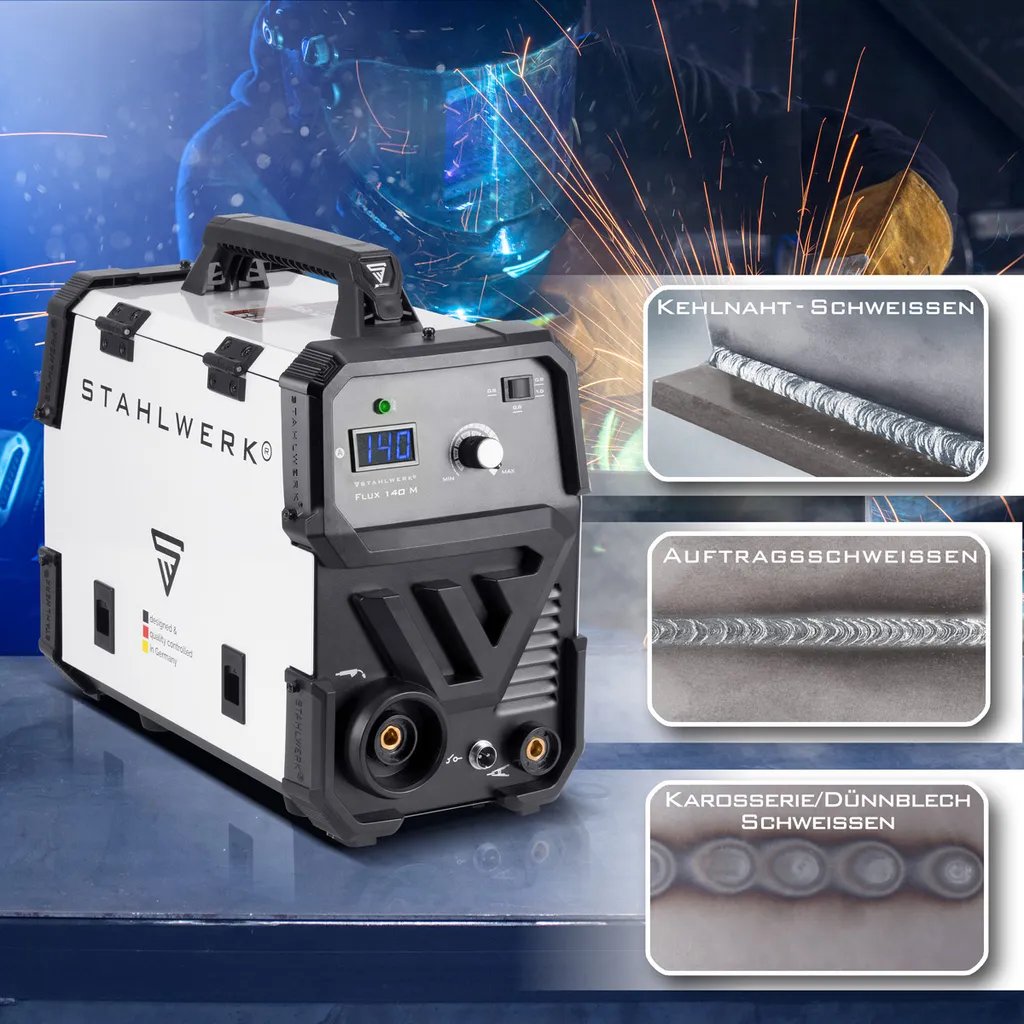 STAHLWERK FLUX 140M Fülldraht Schweißgerät Synergisch 0,6 0,8 0,9 1,0 Mm No Gas