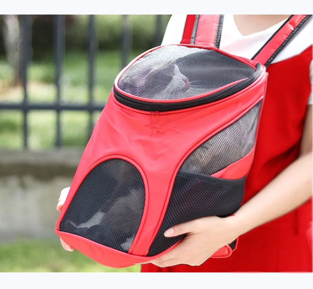 Stretoey Oxford Tuch Katze Hund Rucksack, Outdoor Tragbar Faltbar Atmungsaktiv Mesh Backpack, Für Haustier Bis 3 Kg, 30x24x33cm, Rot Transportbox