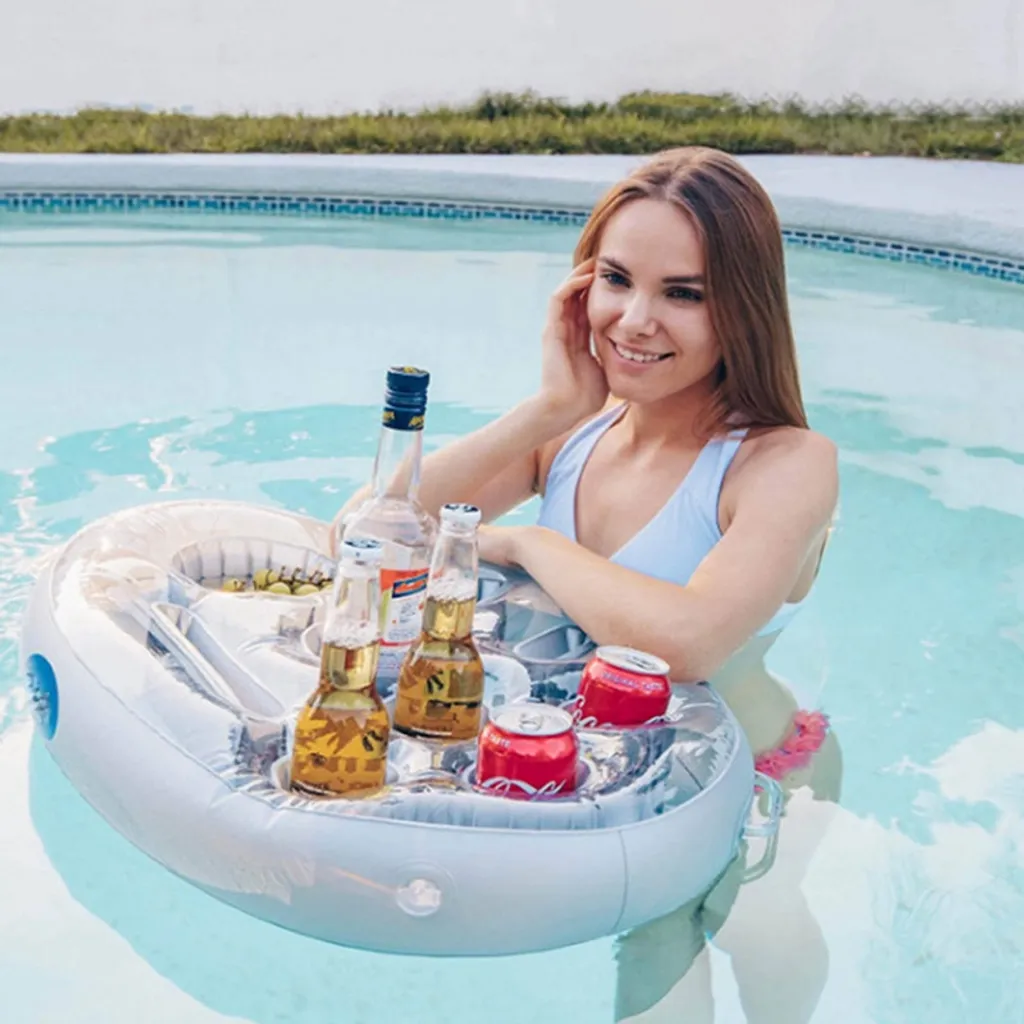 Stretoey Sommer Party Aufblasbar Poolbar, 70x50cm Silber Getränkehalter, Schwimmend Bier Getränkekühler