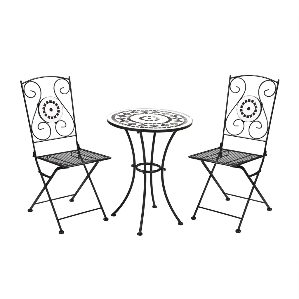 SVITA Bistro-Set Mosaik Balkon-Set 2 Personen Metall Sitzgruppe Klappbar Schwarz