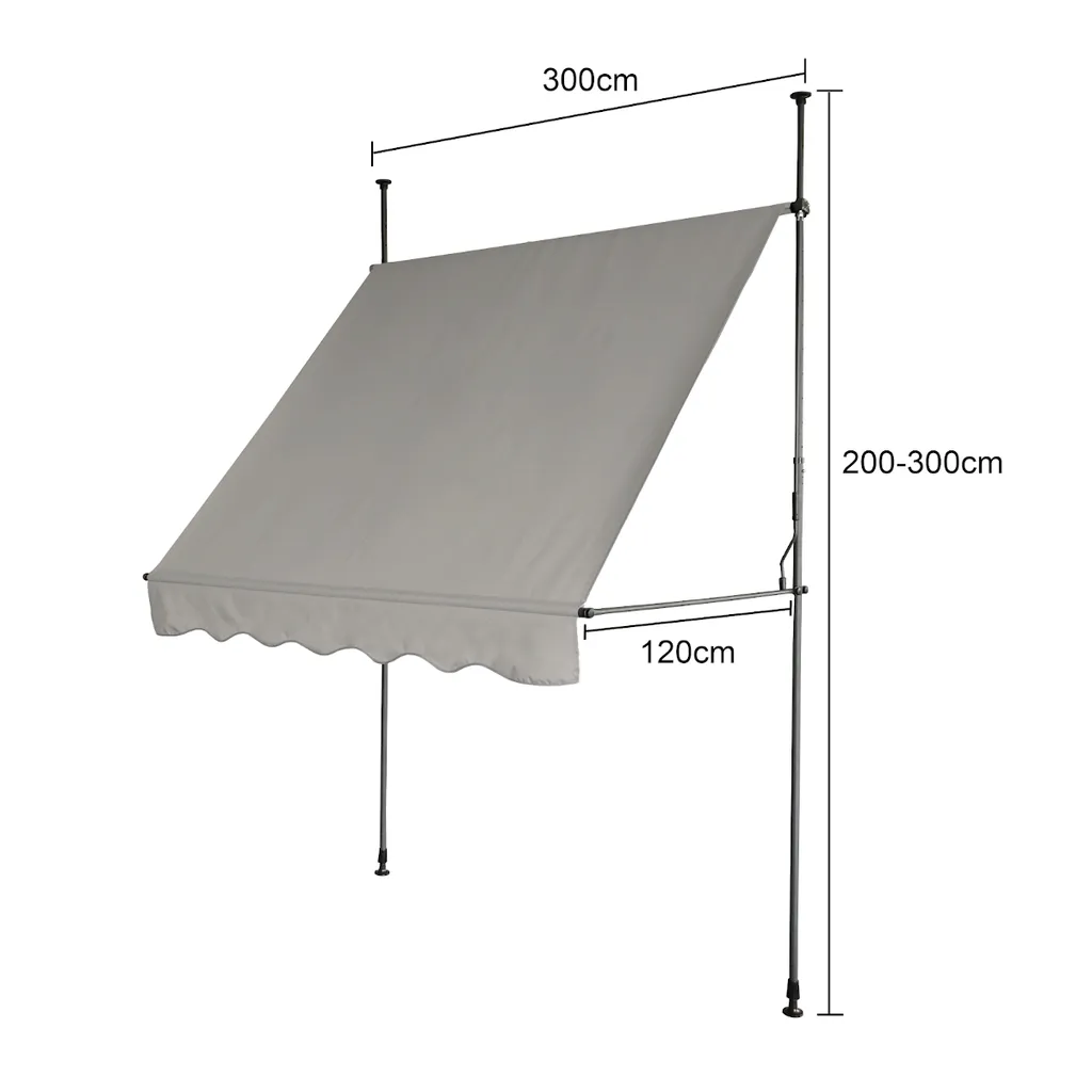 SVITA Klemmmarkise 300x120cm 280g/m² Balkonmarkise Sonnenschutz Markise Hellgrau Grau