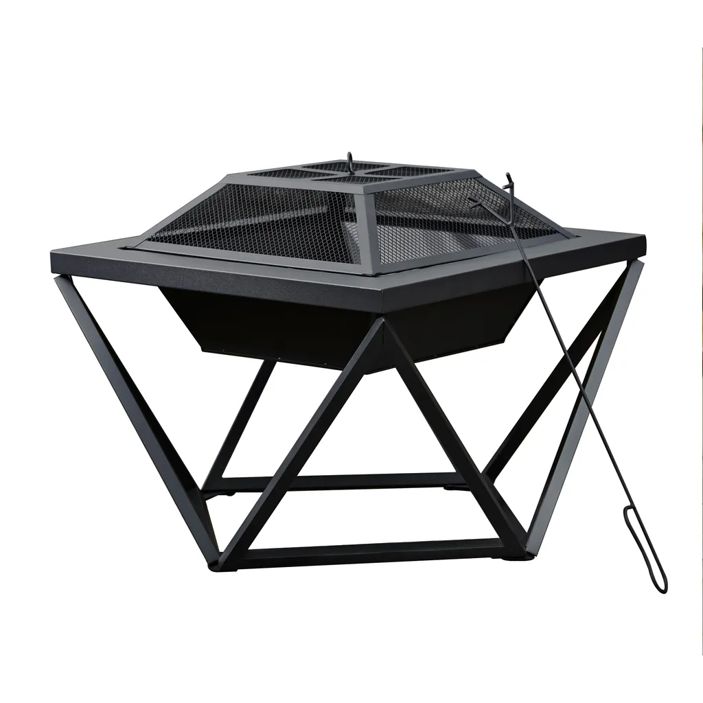 Teamson Home Garten Große Holzbefeuerte Feuerstelle, Gartenmöbel, Kaminofen, Feuerstellenheizung, Holzbrenner Aus Metall Mit Schürhaken Und Deckel, Schwarz Geometrisch