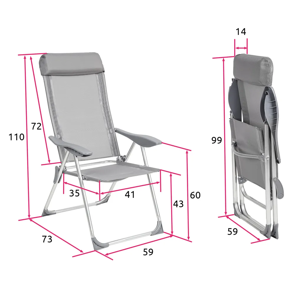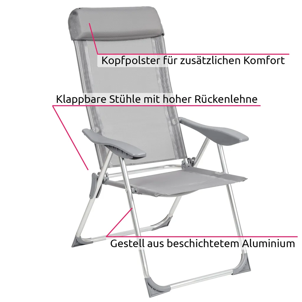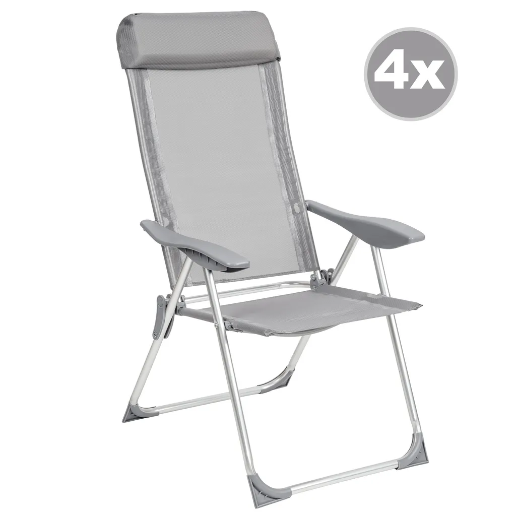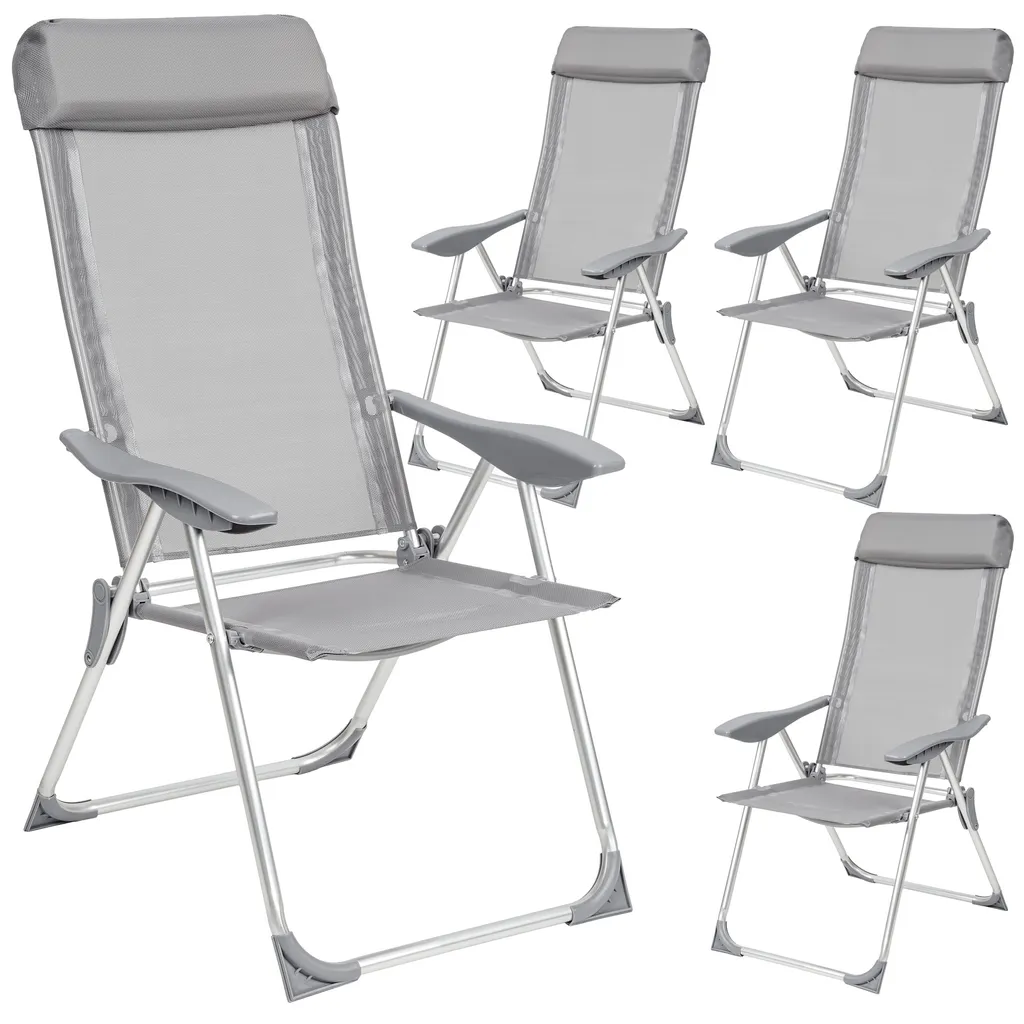 Tectake 4 Aluminium Gartenstühle Klappbar Mit Kopfteil – Grau