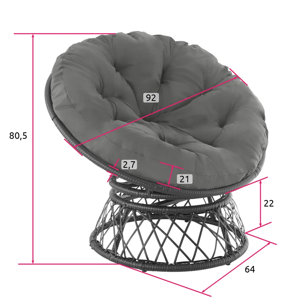 Tectake Rattansessel Gargano Drehbar – Schwarz
