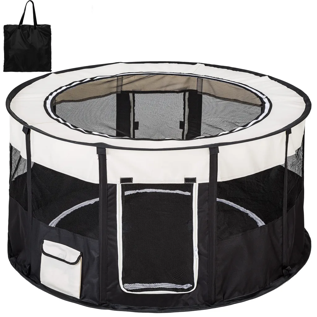 Tectake Welpenlaufstall Carola Aus Polyester Mit Tragetasche – Schwarz